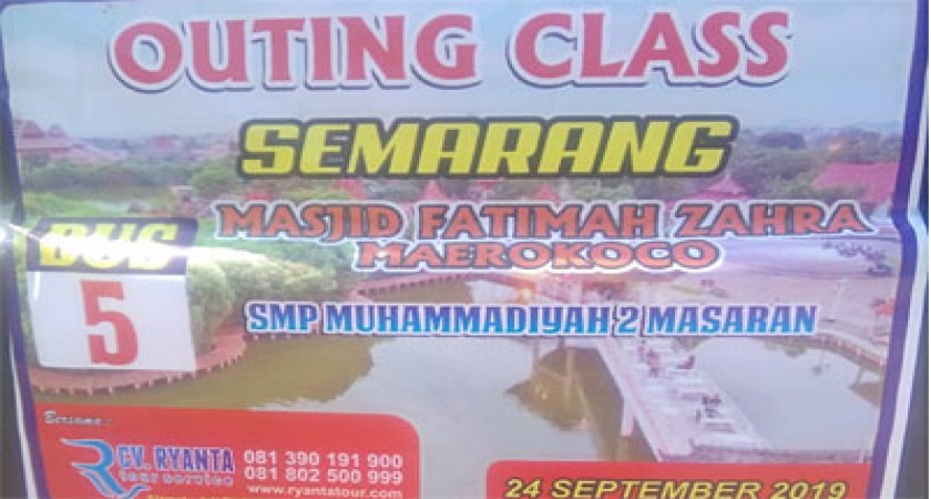 Kegiatan ini dilaksanakan pada hari Selasa, 24 September 2019 berangkat dari SMP Muhammadiyah 2 Masaran pukul 08.00 dengan menggunakan 5 bus. Bapak dan ibu guru yang mendampingi antara lain wali kelas IX dan guru mapel PAI.