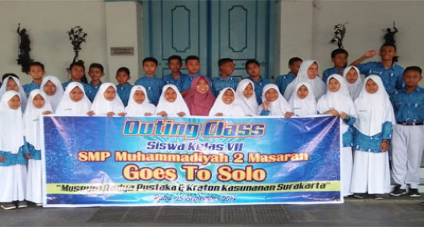 Rombongan berangkat dari SMP Muhammadiyah 2 Masaran menuju Keraton Kasunanan Surakarta pukul 08.00 dengan menggunakan 5 bus. Bapak dan ibu guru wali kelas VII dan beberapa guru ikut mendampingi siswa dalam kegiatan ini, termasuk guru mapel IPS karena kegiatan ini tema nya pelajaran IPS (sejarah)